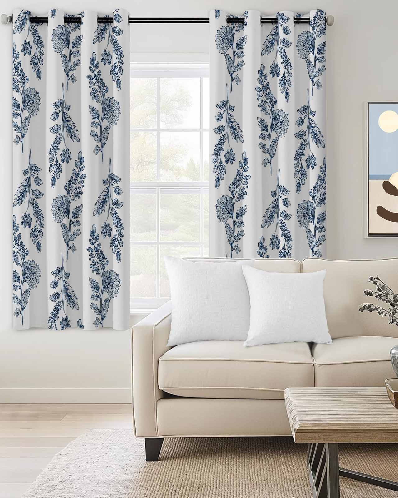 Add a touch of timeless charm to your space with these elegant white-and-blue botanical print curtains. Featuring delicate hand-drawn leaf and floral patterns (in a soft indigo hue), these drapes blend farmhouse warmth, cottage coziness, and subtle vintage style. Perfect for filtering light while elevating the aesthetic of living rooms, bedrooms, or dining areas – a versatile choice for both modern and classic interiors.